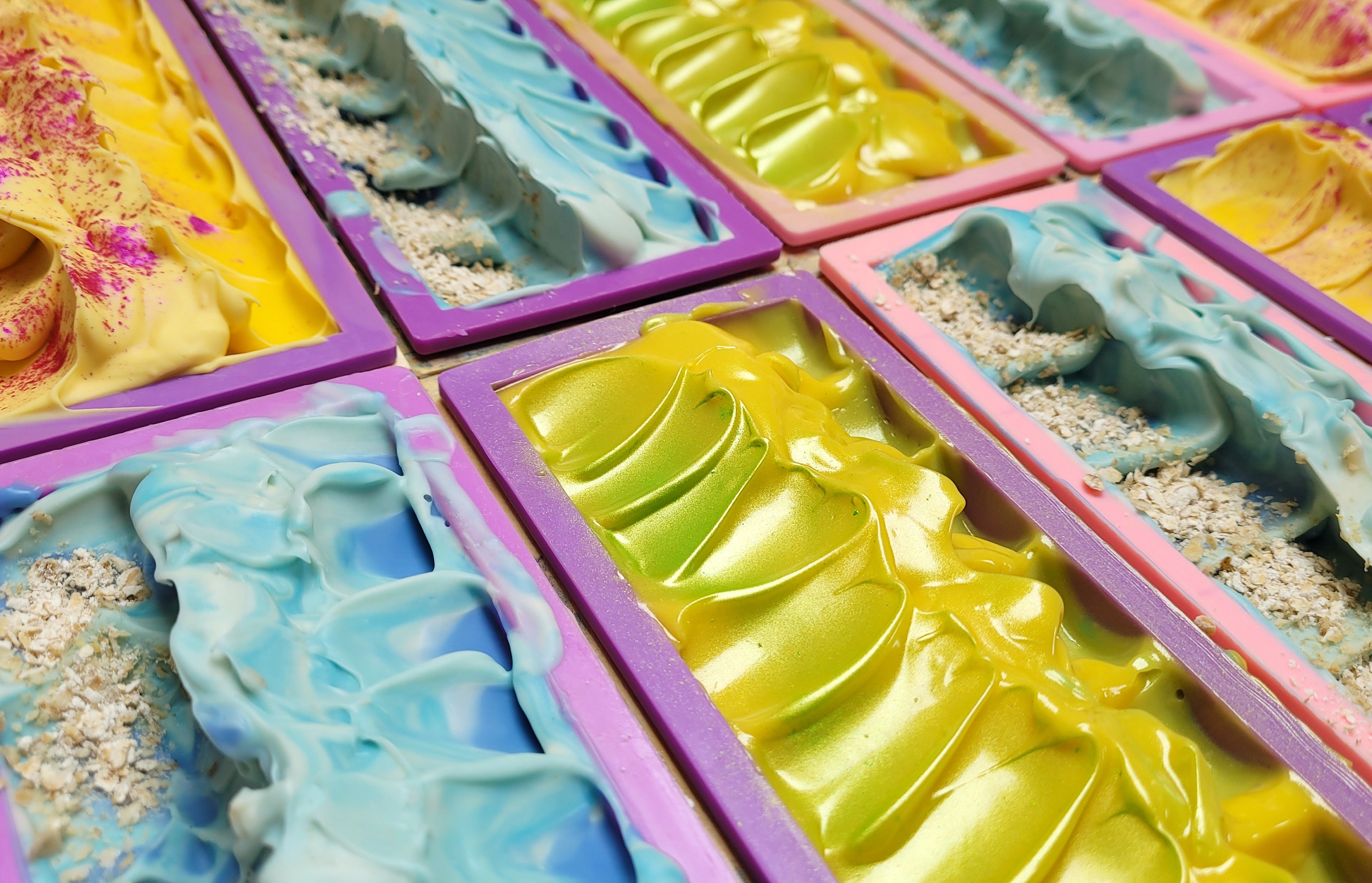 Here at Kilo Soap Co we aim to make fun, colourful products that not only look great in your bathroom, but feel great on your skin. All our soaps are 100% handmade, Vegan, Cruelty-free, Palm oil free, SLS free, Sulphate free, Paraben free and are Eco-friendly. We use high quality butters and oils that will leave your skin feeling fantastic and not dried out like most mass produced soaps or shower gels do. They are also much better for the environment as we do not use any plastic packaging. All packaging is recyclable and even our soaps that are topped with glitter are biodegradable. Our soaps are long lasting and can be used on the face and body.